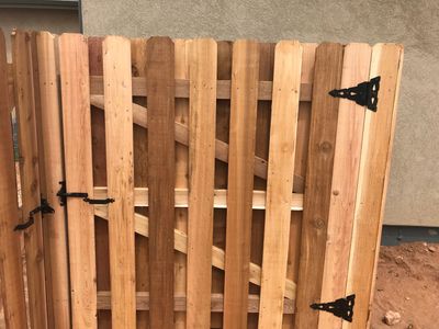 Our gates are reinforced and built to last. We use extra reinforcement in braces and brackets. In most cases we will use bigger posts and dig the post hole depth deeper on the hinge side of the gate to prevent any sagging.